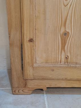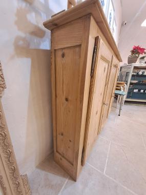 Ce buffet haut à 3 portes est en bois naturel ciré.